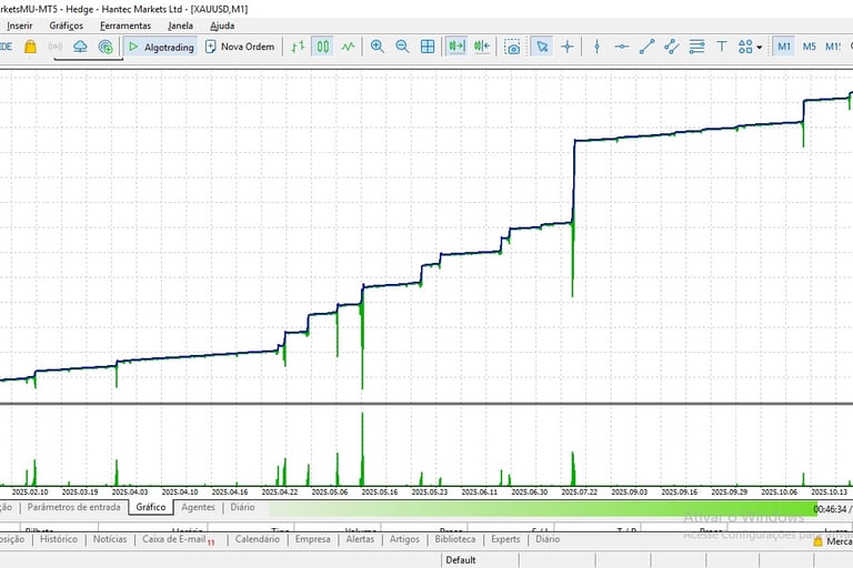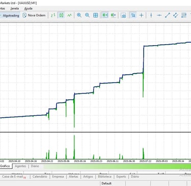 Disclaimer: Resultados de backtestes são uma demonstração do potencial do sistema sob condições históricas específicas e não garantem lucros futuros. O desempenho pode variar de acordo com as condições do mercado, spread da corretora e outros fatores.